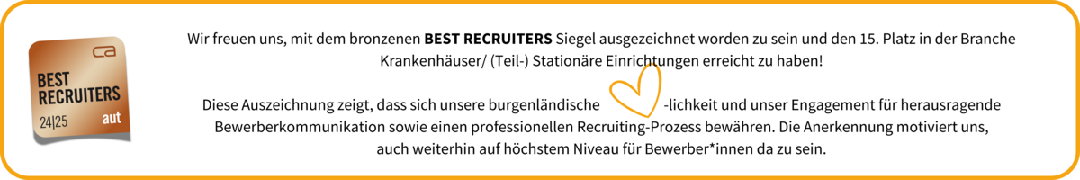 Als größter burgenländischer Arbeitgeber im Gesundheitswesen suchen wir Persönlichkeiten, die sich mit Kompetenz, Menschlichkeit und Freude unserem sinnstiftenden Auftrag der Gesundheitsversorgung anschließen. Wir schaffen ein wertschätzendes und teamorientiertes Arbeitsumfeld, in dem Leistungen anerkannt werden, legen Wert auf fachliche und soziale Kompetenz sowie Leistungsbereitschaft und fördern die berufliche und persönliche Weiterentwicklung unserer Mitarbeiter*innen.