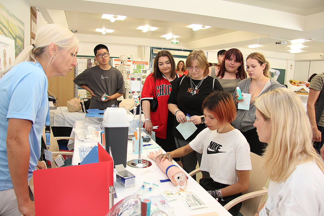 - Besucherinnen und Besucher dürfen auch wieder selber Hand anlegen, etwa bei endoskopischen Untersuchungen an Übungspuppen oder beim OP-Training, im Rahmen dessen laparoskopische Eingriffe simuliert werden (Knopflochchirurgie).