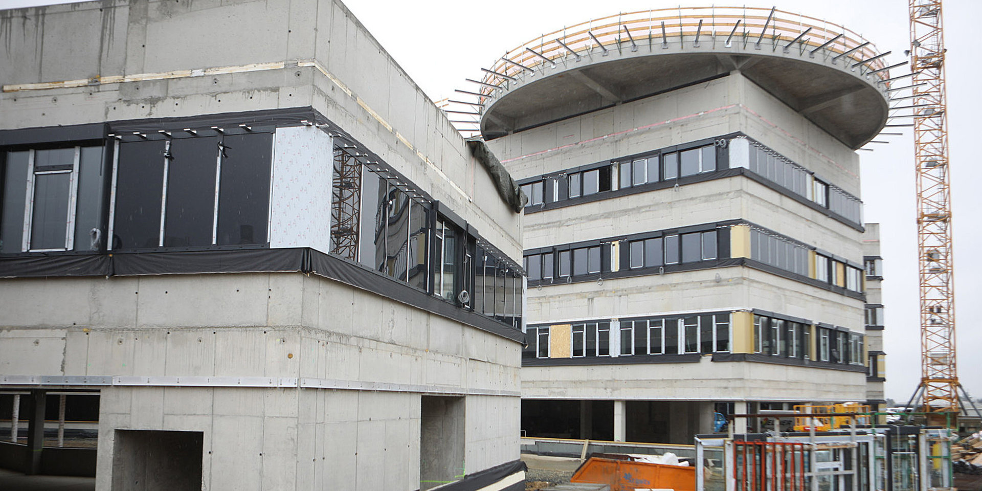 Im Innenausbau konnten bereits einige abgeschlossene Arbeiten besichtigt werden, im Juli 2021 wurde der erste von sieben Bauteilen („Fingern“) im Rohbau abgeschlossen. Sobald ein „Finger“ fertig geworden ist, wurde bei diesem unmittelbar danach mit der Ausbauleistung (Fenster, Installationen, Böden etc.) begonnen. Bisher wurden beispielsweise bereits mehr als 750 Fenster eingebaut. Ziel ist die komplette bauliche Fertigstellung in allen Gebäudeteilen bis zum dritten Quartal 2023.