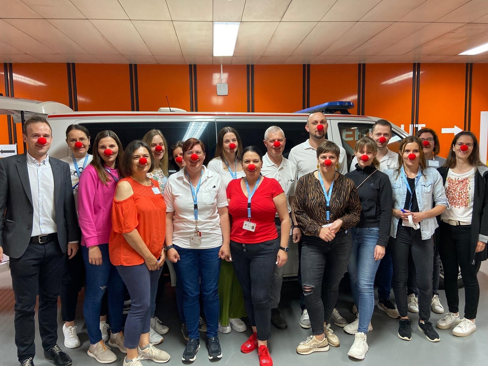 Die Spenden für Bürostühle, Schreibtische und diverses Büromaterial brachten rund 4.400 Euro ein. Die Geschäftsführung der Gesundheit Burgenland, Univ.-Prof. Dr. Stephan Kriwanek und Mag. Franz Öller, MBA, MPH, rundete die Summe auf stolze 5.000 Euro auf. Nun wurde der symbolische Scheck an Ute Sračnik von den ROTE NASEN Clowndoctors, einem Verein zur Unterstützung von kranken oder leidenden Menschen durch Humor und Lebensfreude, überreicht.