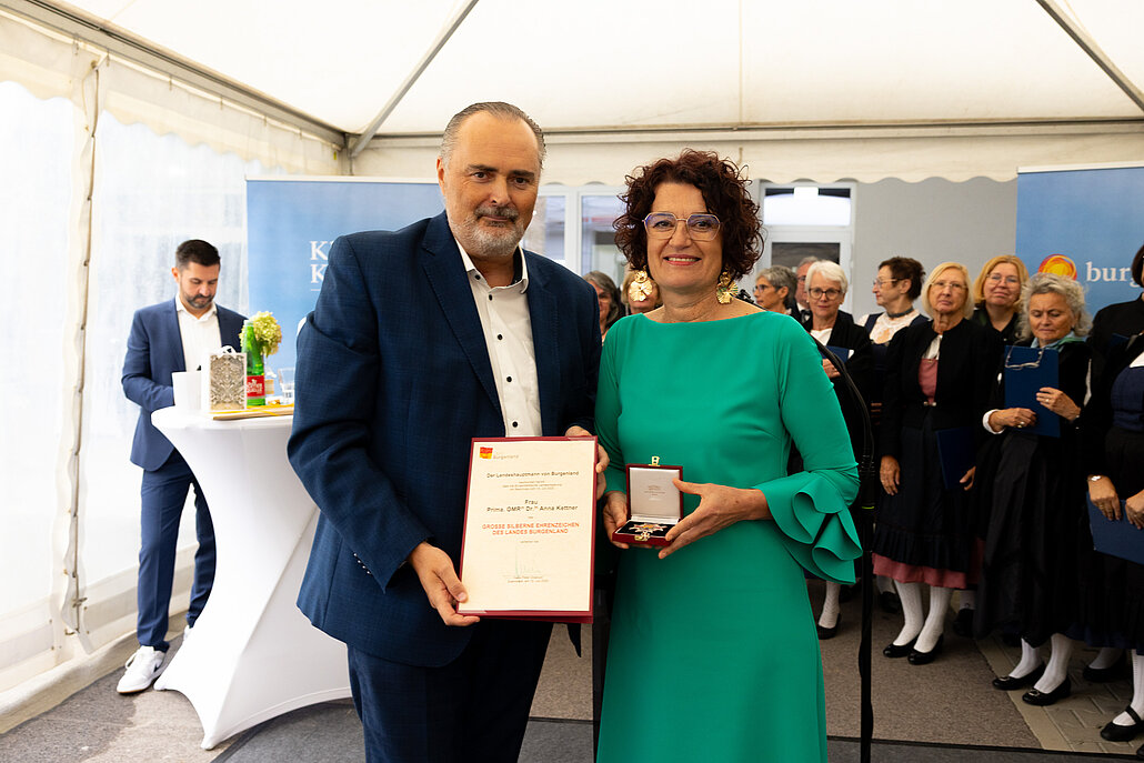 Spätestens beim Überraschungsauftritt des „Singverein Halbturn“, bei dem die scheidende ärztliche Direktorin aktives Mitglied ist, und im Beisein von Tochter Sonja bahnten sich die Emotionen auf den Gesichtern ihren Weg. Als einer der Höhepunkte bekam die Obermedizinalrätin das „Große Silberne Ehrenzeichen des Landes Burgenland“ verliehen. Der Landeshauptmann persönlich überreichte Kettner die Auszeichnung. Sie geht an Menschen, die sich besonders um das Land Burgenland verdient gemacht haben.