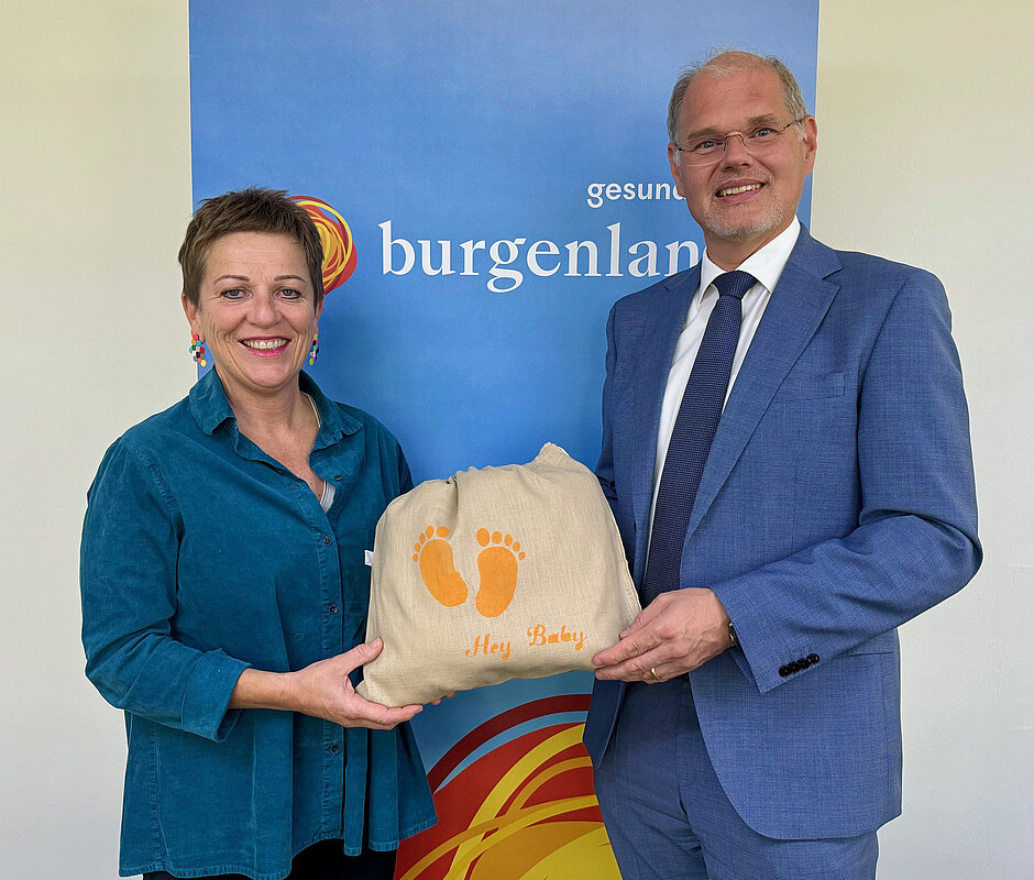 Ein Baby zu bekommen, ist einer der schönsten Momente im Leben. Um diesen besonderen Anlass auch im beruflichen Umfeld zu würdigen, überreicht die Gesundheit Burgenland ihren Mitarbeiterinnen und Mitarbeitern, die Nachwuchs bekommen, ein besonderes Geschenk: ein Babypaket mit einer Stofftasche, einem Kapuzenbadetuch und einer Glückwunschkarte.