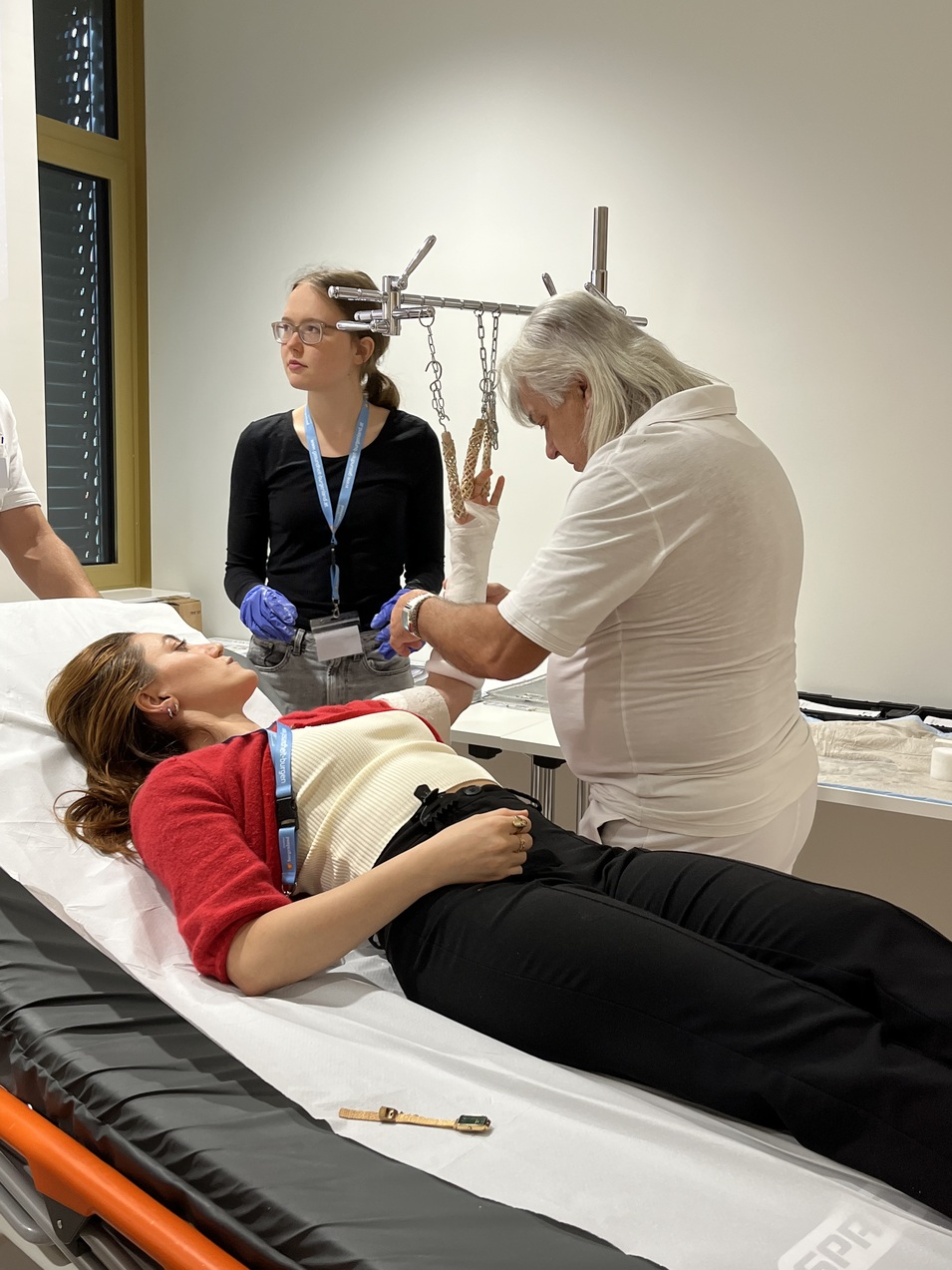 - Knochenbruchbehandlung: Primarius Dr. Dieter Pertl und sein Team unterstützten bei praktischen Anwendungen im Schrauben und Gipsen