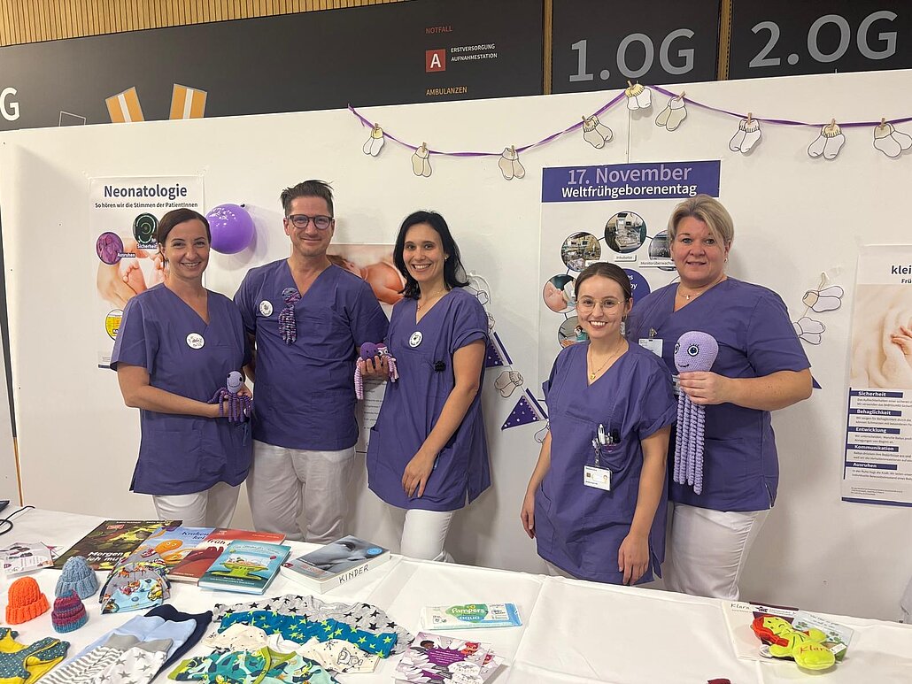 zum Anlass erstrahlte der Eingangsbereich der Klinik in leuchtendem Lila, das weltweit als Symbolfarbe für Frühgeborene gilt. Diese Farbe steht für Hoffnung, Einzigartigkeit, Ermutigung, Sensibilität und die Offenheit, anderen zu helfen – Werte, mit besonderer Bedeutung für die kleinen Patient*innen und ihren Familien auf ihrem oft herausfordernden Weg zur Seite stehen. „Jedes Frühchen ist ein kleines Wunder – und der Welt-Frühgeborenen-Tag erinnert uns einmal mehr daran, warum unsere Arbeit so wichtig ist. Es war schön zu sehen, wie groß das Interesse an unserer Arbeit ist. Der Besuch ehemaliger Patientinnen und Patienten, der Austausch mit deren Familien, sowie mit den Besucherinnen und Besuchern hat uns sehr berührt,“ sagt DGKP (KJP) Brigitte Wagner, Stationsleiterin der Abteilung für Kinder- und Jugendheilkunde mit Neonatologie der Klinik Oberwart.