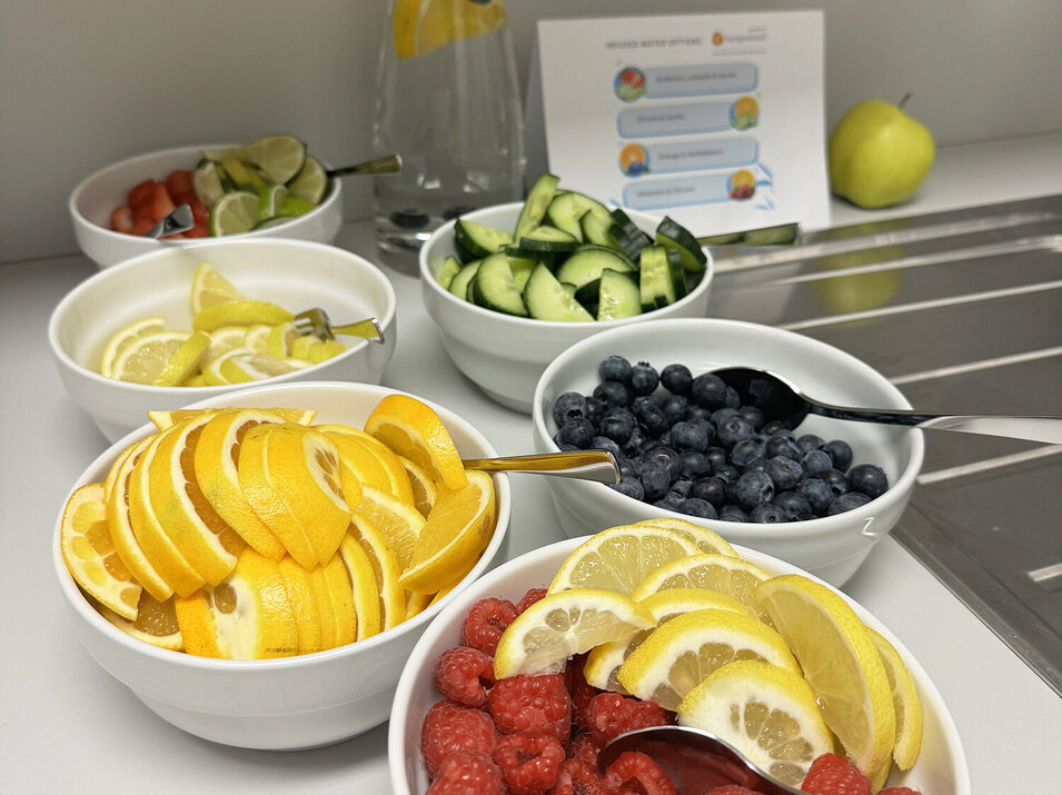 Direktion Eisenstadt: In der Direktion in Eisenstadt standen für alle Mitarbeiterinnen und Mitarbeiter Früchte (Zitronen, Orangen, Erdbeeren etc.) für „Infused Water“ bereit. Zusätzlich wurde in mehreren Mitarbeiterküchen eine gesunde Jause, bestehend aus Gemüsesticks, Vollkornbrot, Aufstrichen und Obst zur Verfügung gestellt. „Die Gesundheitswoche stand ganz im Zeichen der Betrieblichen Gesundheitsförderung. Schon in der Vergangenheit haben wir an unseren Standorten verschiedene Aktionen – oft auch gemeinsam mit der BVAEB – durchgeführt. Die Gesundheitswoche war der vorläufige Höhepunkt. Für das kommende Jahr sind bereits weitere Maßnahmen in Planung“, so Dr. Roland Graschitz, Direktor für Personal und Recht in der Gesundheit Burgenland, abschließend.
