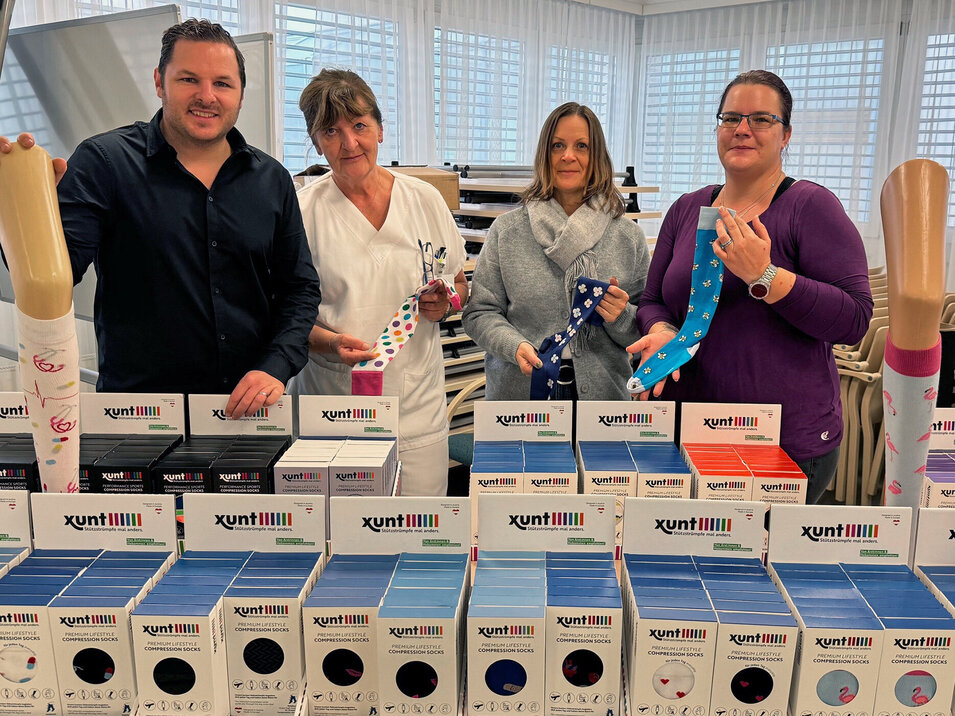 Klinik Oberpullendorf: Auf den Stationen wurden Yoga-Atemübungen erklärt, die jederzeit während der Arbeit oder in den Pausen zur Entspannung beitragen können, zudem standen Obstkörbe und gesunde Snacks bereit. Das Team der Physiotherapie präsentierte Hilfsmittel für rückenschonendes Arbeiten und gab Tipps zur richtigen Haltung beim Sitzen. Der größte Andrang im Festsaal herrschte beim „xunt“-Stand, wo es Stützstrümpfe in knalligen Farben und mit witzigen Designs für Sport und Alltag zu bestaunen und zu erwerben gab. Die Küche ließ sich ebenfalls etwas einfallen: Es gab neben Salaten und Smoothies eine gesunde Nachspeise, inklusive Rezept zum Nachbacken.