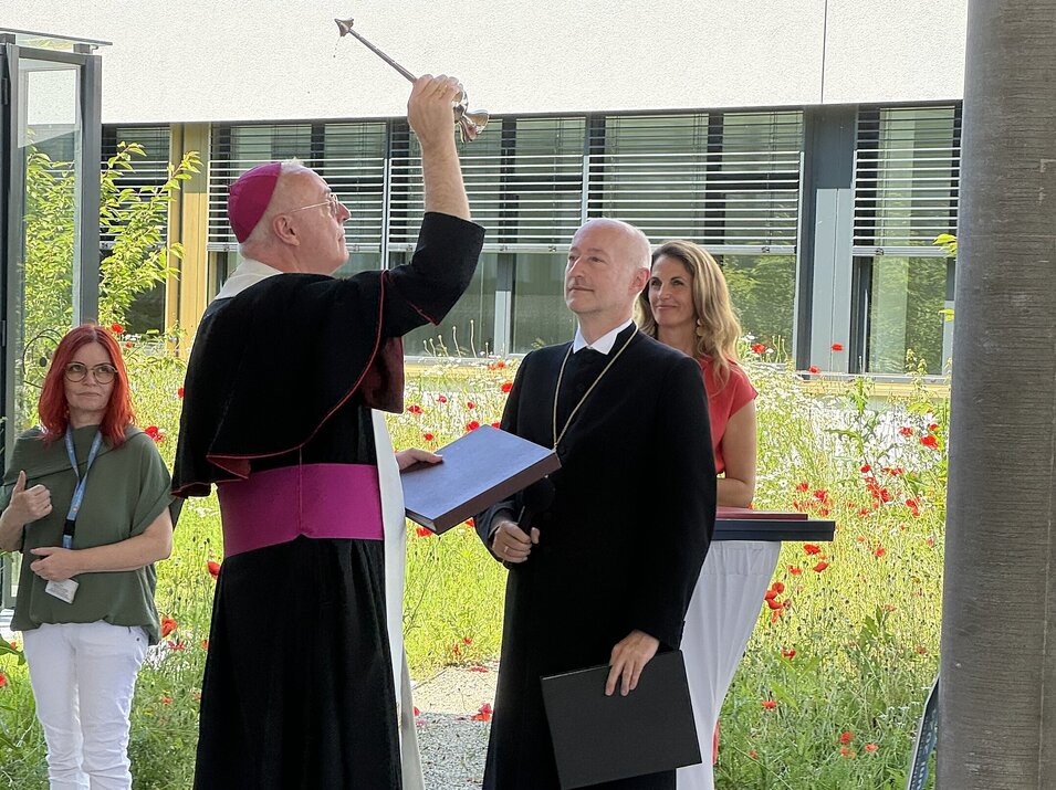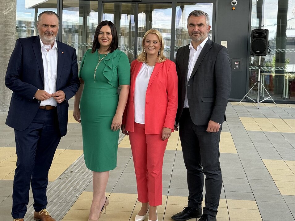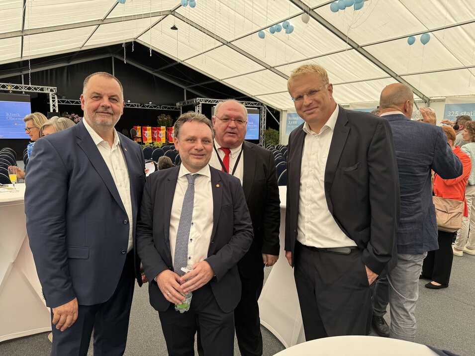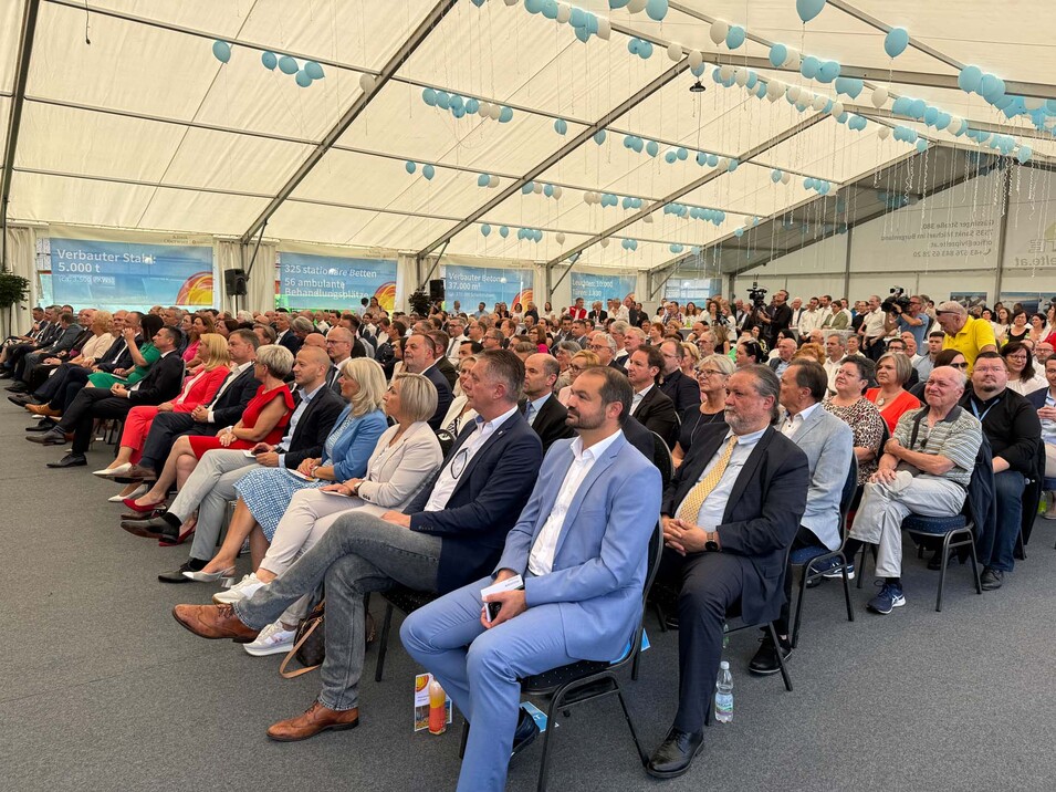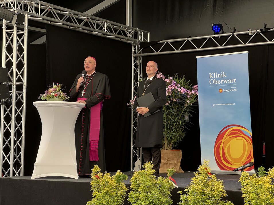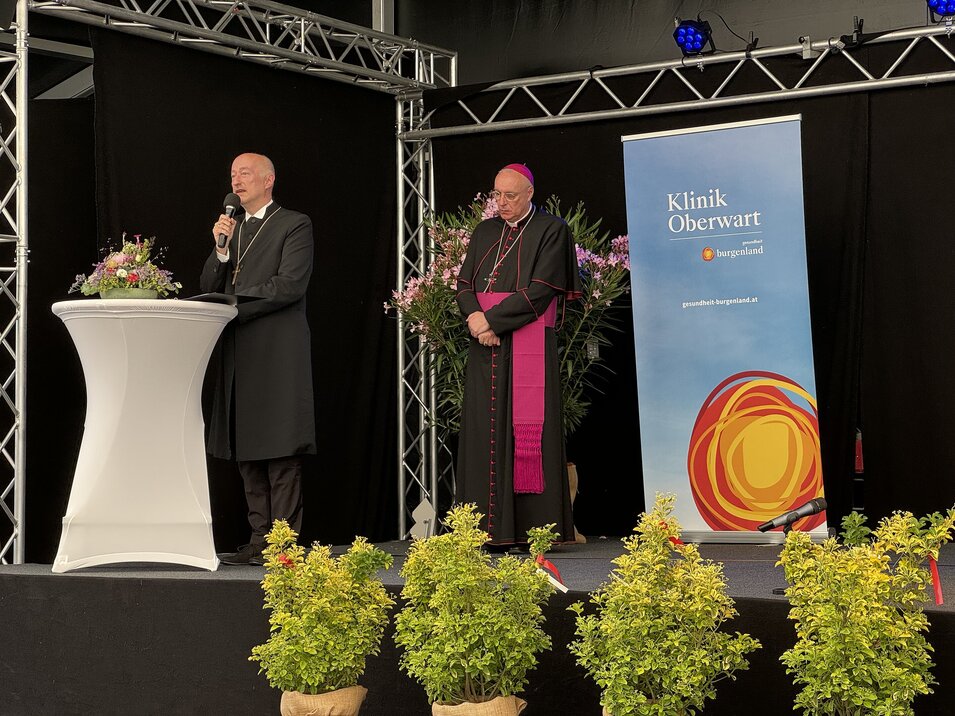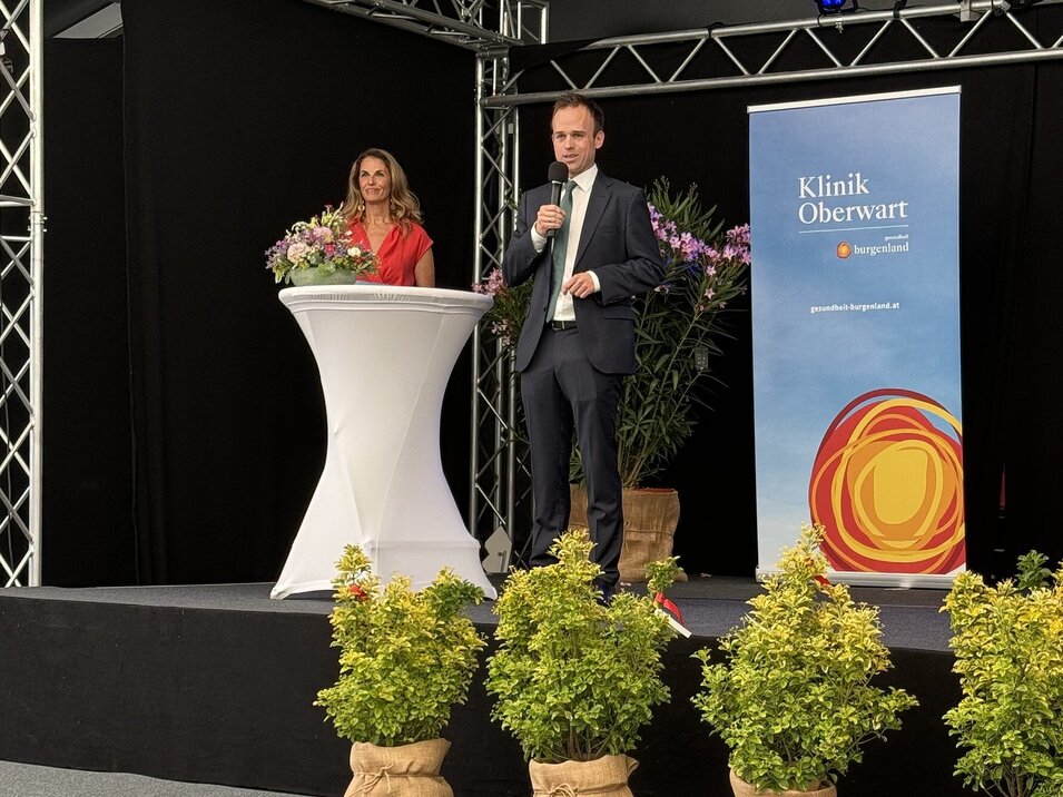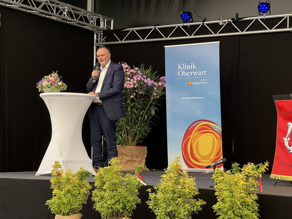 Rund 500 Gäste kamen am Freitag, den 7. Juni 2024, zur Eröffnungsfeier der neuen Klinik Oberwart. Diese fand, wie geplant, genau ein Monat nach dem Start des Patientenbetriebs statt. Die Kollegiale Führung der Klinik begrüßte den Aufsichtsratsvorsitzenden der Gesundheit Burgenland, Landeshauptmann Hans Peter Doskozil, den kaufmännischen Geschäftsführer der Gesundheit Burgenland, Franz Öller, die hohe Geistlichkeit – Diözesanbischof Ägidius Zsifkovics und Superintendent Robert Jonischkeit – sowie weitere zahlreiche Ehrengäste, Mitarbeiterinnen und Mitarbeiter der Kliniken und viele Interessierte aus der Bevölkerung. Franz Öller dankte in seiner Festrede allen, die in den Monaten nach der Baufertigstellung für einen reibungslosen Start gesorgt haben.